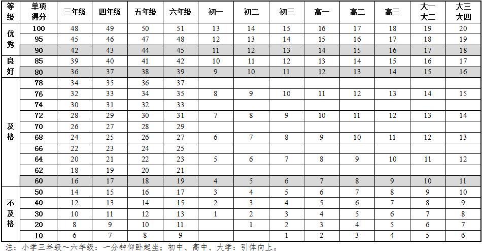 4.本标准将适用对象划分为以下组别:小学、初中、高中按每个年级为一组,其中小学为6组、初中为3组、高中为3组。大学一、二年级为一组,三、四年级为一组。