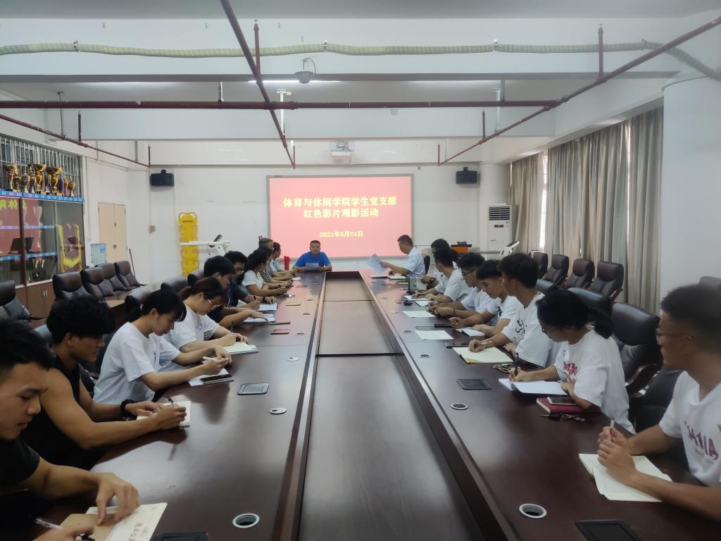 学生党支部党史学习教育“红色影片”观影活动在体育馆会议室开展,参加本次活动的有学院党总支书记李新华老师、党总支副书记蔡法老师、办公室主任杨建梅老师、组织员马建辉老师、学生党支部书记夏慈忠老师、团委书记杨颖姑老师以及在校的16名学生党员。