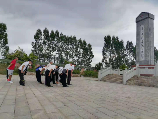 在庄严肃穆的革命烈士纪念碑前,参加活动的全体教职工庄严肃立,怀着无比崇高的敬意,向烈士行三鞠躬礼、怀着无比崇敬的心情瞻仰陵园内的烈士墓碑,深切缅怀他们的丰功伟绩。