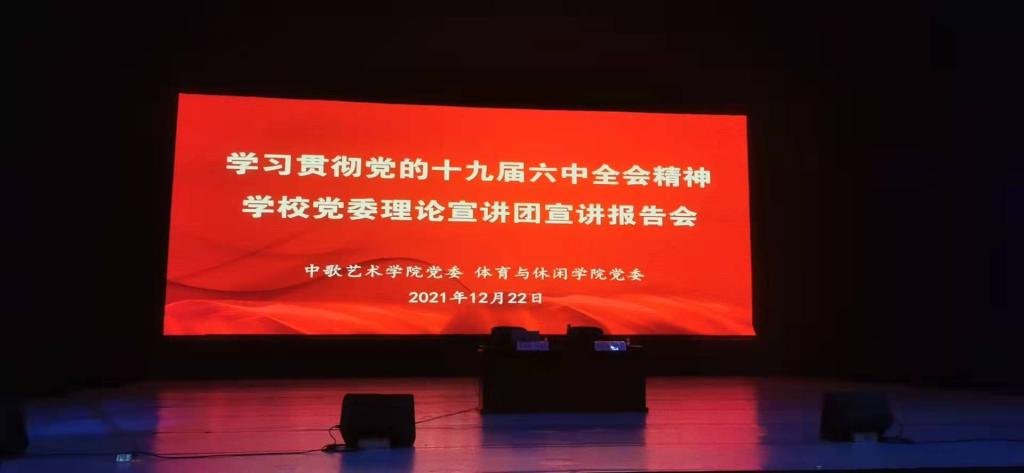 12月22日下午2时30分,学校党委理论宣讲团成员、马克思主义学院副院长周良武副教授在中歌艺术学院实验剧场,为两个学院的全体教职工和学生党员,做了一场党的十九届六中全会精神专题宣讲报告会。中歌艺术学院党委书记冯红爱主持专题宣讲报告会。
