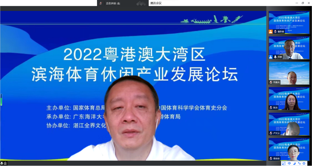 、湛江市文化广电旅游体育局共同承办的2022年粤港澳大湾区滨海体育休闲产业发展论坛在线上成功举行。