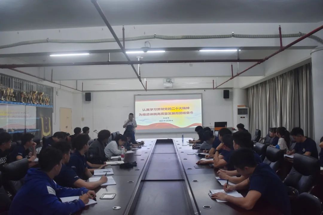 党委书记李新华老师进行授课,授课主题为“认真学习贯彻党的二十大精神,为推进体院高质量发展而团结奋斗”。