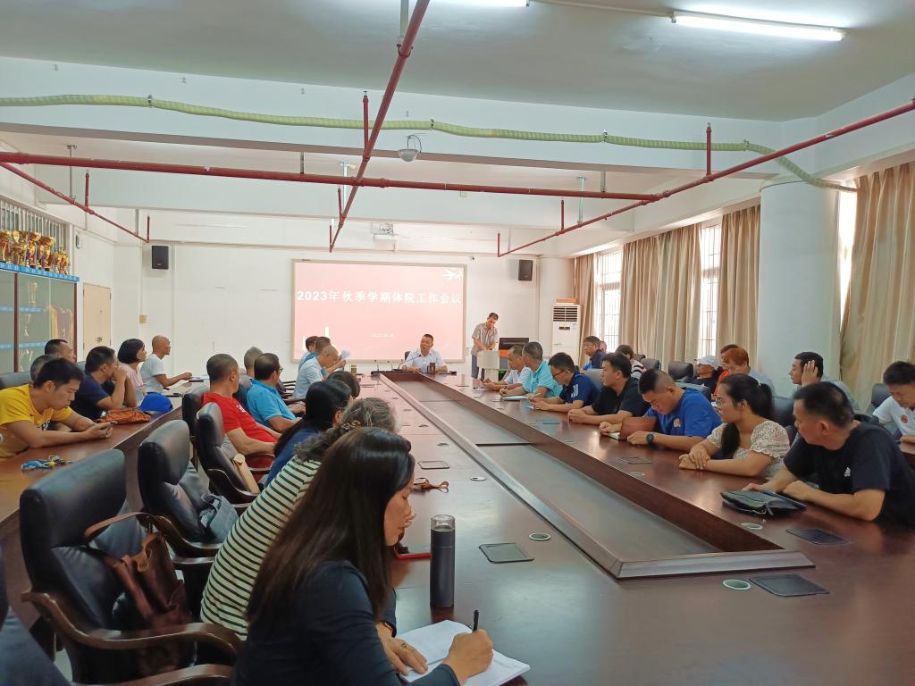 在湖光校区体育馆110会议室召开2023年秋季新学期全体教职工会议。会议由学院党委李新华书记主持,全院教职工出席会议。