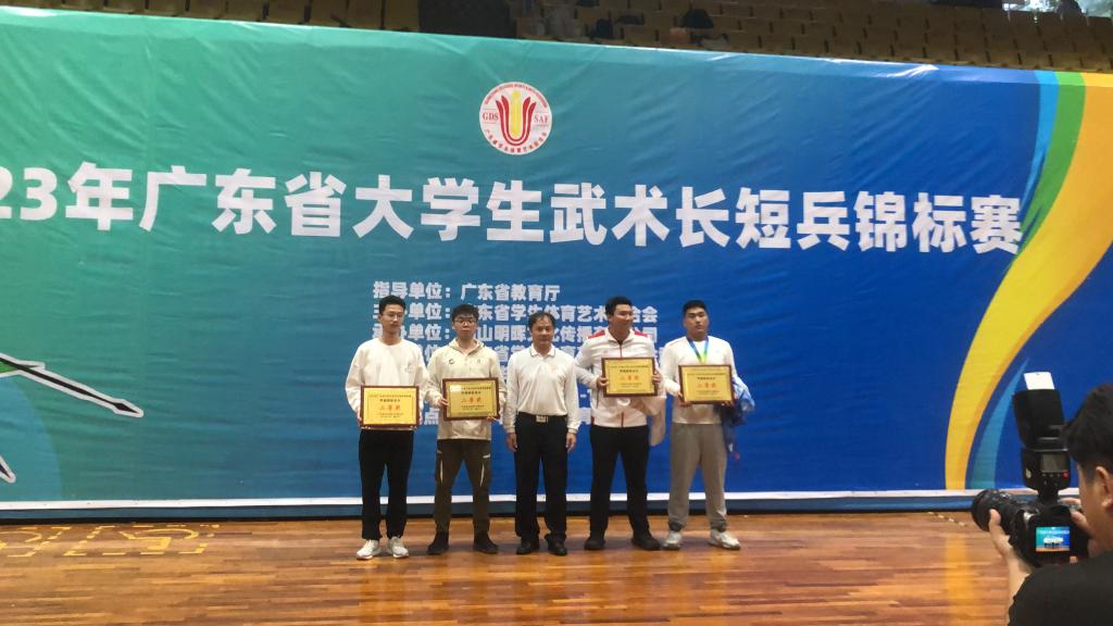武术长短兵代表队,经过顽强拼搏,最终以45分的成绩,获团体总分(甲组)二等奖,为学校争得荣誉。本次比赛由广东省学生体育艺术联合会主办,全省共26支队伍参加,强校云集,代表了广东省高校的最高水平。