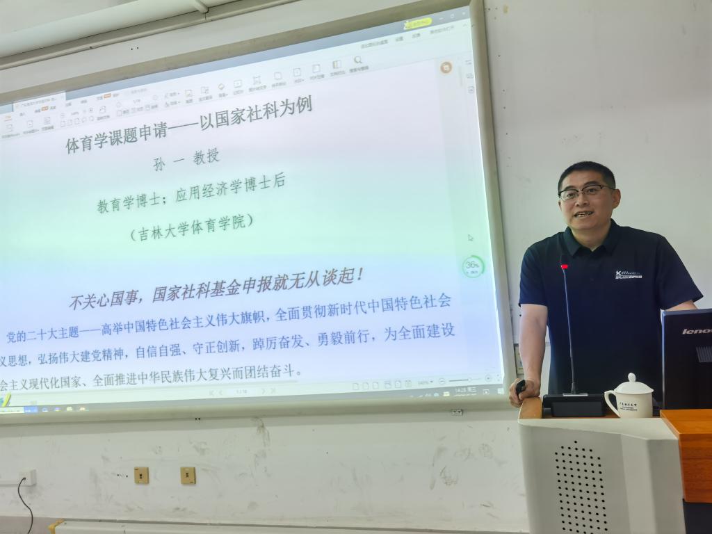 孙一教授结合自身学术经历从党的二十大报告和全国两会的体育论述、体育学项目的重要意义、选题指南解读、体育学研究热点和申请书填写要点等五大方面展开,旁征博引,条分缕析,详细展示了体育学项目申请的选题、论证和写作过程。孙一教授指出,体育关乎国计民生,广大师生要依托学科特点和地区需求开展研究,突出课题的实践价值,满足社会需求,推动当地体育文化的传承与发展。