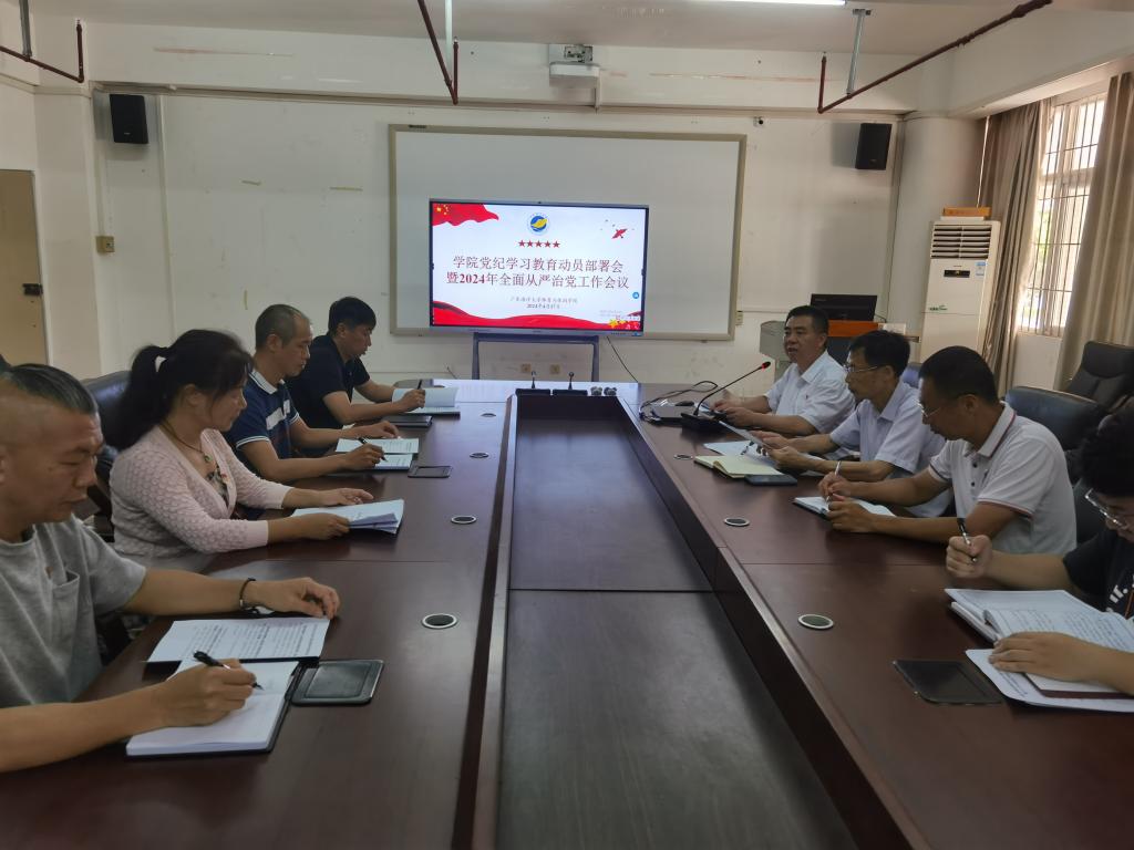 在体育馆会议室召开党纪学习教育动员部署暨2024年全面从严治党工作会议,学习贯彻习近平总书记关于开展党纪学习教育的重要讲话和重要指示精神,部署学院党纪学习教育和全面从严治党工作,学院领导班子成员、党支部书记、党政办主任、组织员、团委书记、辅导员参加会议,学院党委书记王明对主持会议。