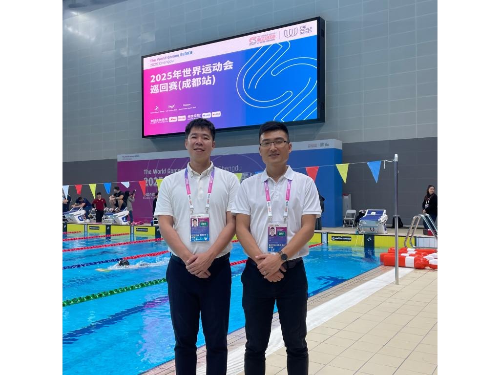3月28日至30日,2025年世界运动会巡回赛成都站在成都体育学院(三岔湖校区)游泳馆举行。受国际世界运动会协会(IWGA)及国家体育总局水上运动管理中心联合邀请,我院委派教师吴粤龙、袁东担任蹼泳和自由潜项目裁判员,全程参与赛事执裁工作。