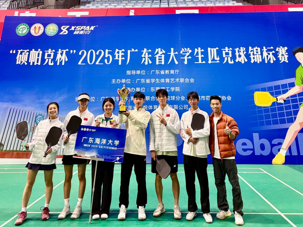 11月21日,2025年广东省大学生匹克球锦标赛拉开帷幕。本次赛事吸引了全省 54 所高校队伍800余名运动员参加,各校健儿齐聚赛场,共同竞技。磁力猫 学子组队参赛,在比赛中敢打敢拼、不畏强手,充分展现了顽强拼搏的海大精神。最终收获甲组女双第二名、甲组男单第五名、乙组女双第七名的成绩,既展现了海大学子的运动素养与拼搏态度,也以一份实实在在的赛事成果,为学校 90 华诞送上了诚挚的祝福与献礼。